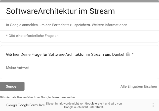 Einmal in der Woche diskutiert Eberhard Wolff, Lisa Schäfer oder Ralf D. Müller Software-Architektur im Live-Stream auf YouTube, Twitch und manchmal LinkedIn - oft zusammen mit einem Gast. Zuschauer können über den Chat und das Formular unten mitdiskutieren oder Fragen stellen. Die Aufnahme steht danach als Video und Podcast zur Verfügung.
